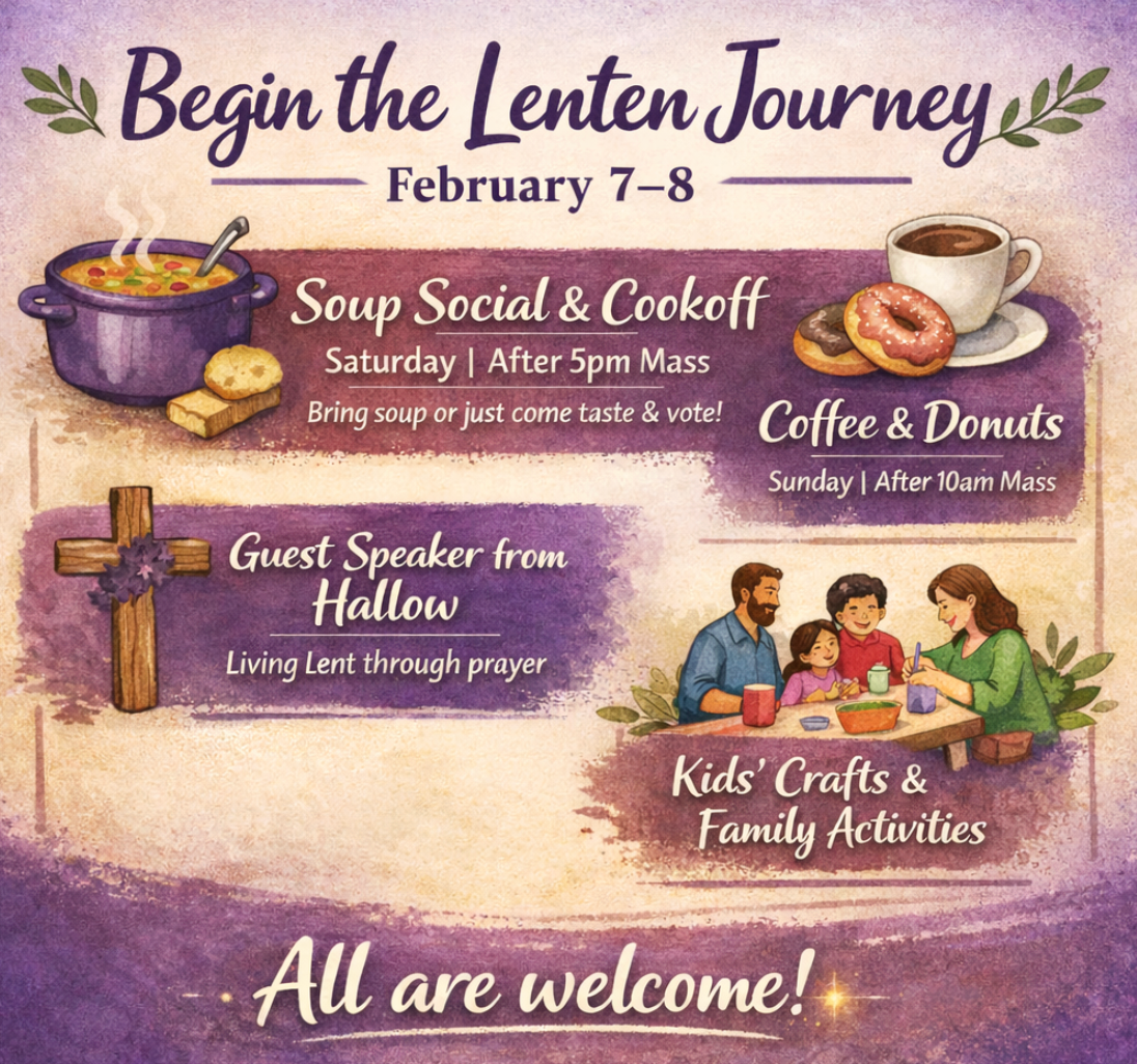 A Kids’ Lent Challenge will also be available on our parish page starting on Ash Wednesday, offering families with children an engaging and meaningful way to experience Lent together.